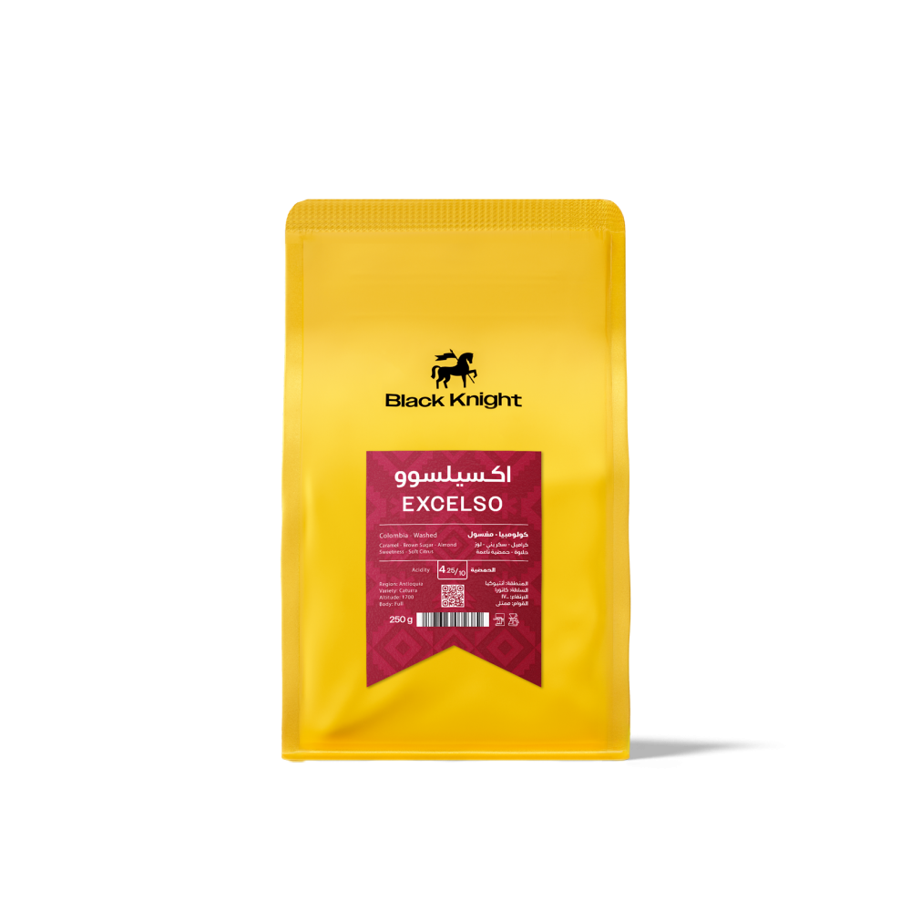 ✨ قهوة كولومبية مختصة من محمصة بلاك نايت، تُزرع على ارتفاع 1700 متر، وتتميز بقوام غني وإيحاءات فريدة من الكراميل، السكر البني، واللوز، مع لمسة حمضية ناعمة.