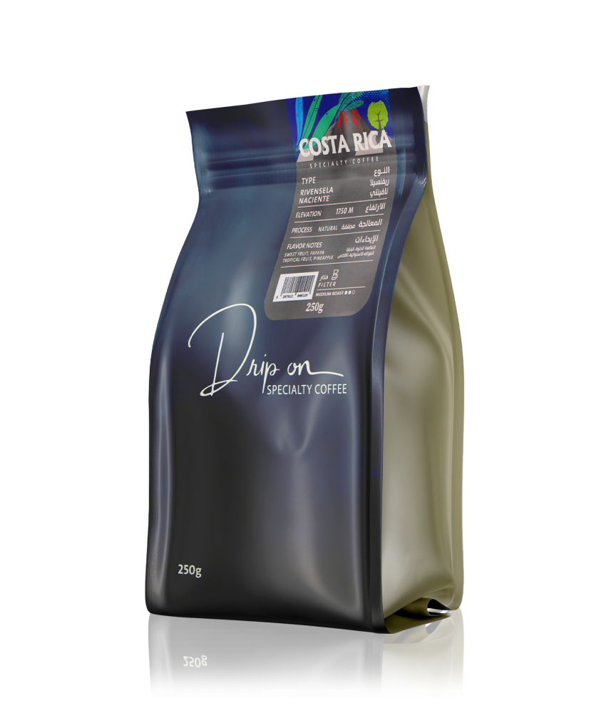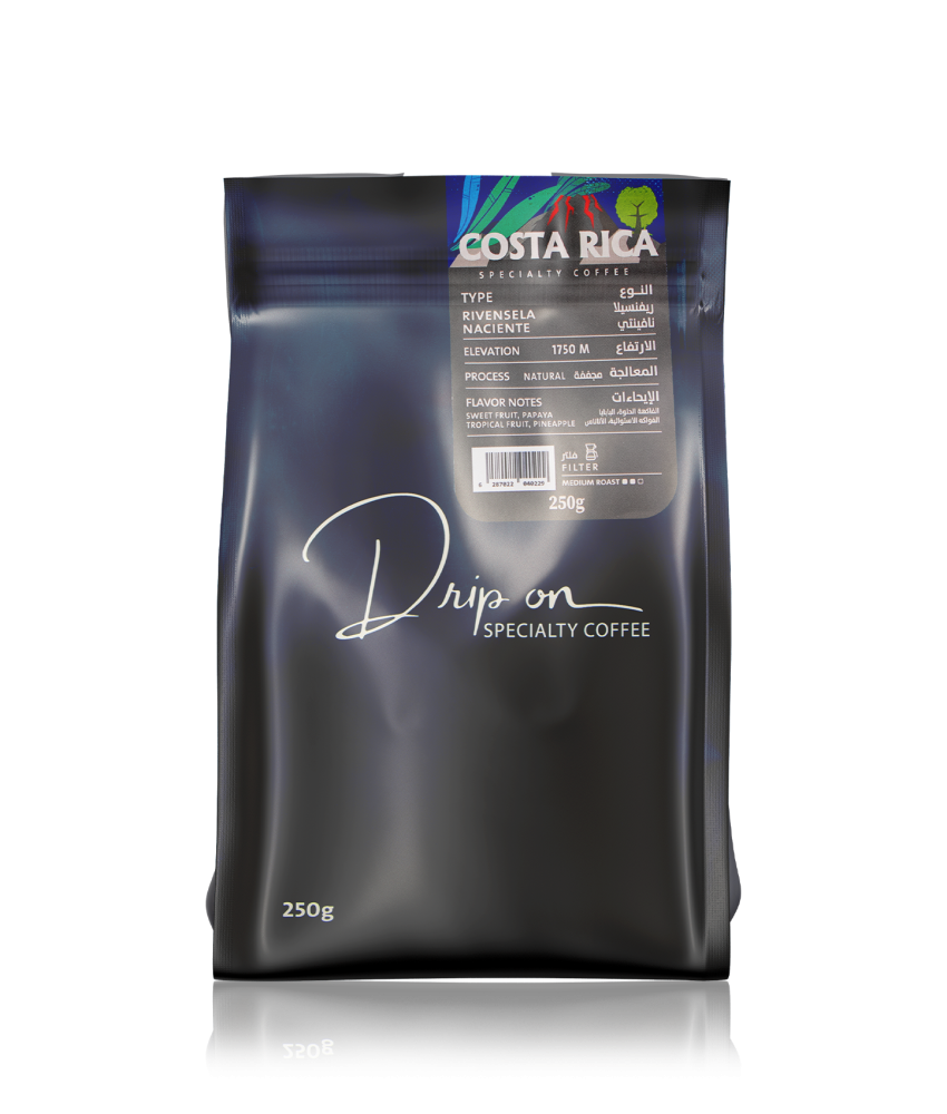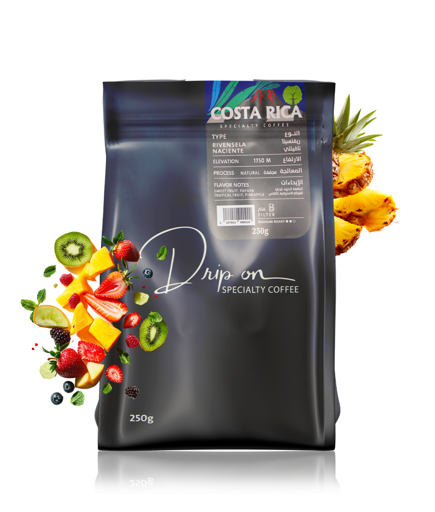 وراء هذا التميز تكمن الحرفية العالية لمحمصة دريب أون التي وضعت جل خبرتها في إبراز أجمل ما في الحبوب الكوستاريكية. عملية التحميص تمت بدقة متناهية لتكشف عن العمق الطبيعي للحبوب وتبرز النكهات الفاكهية بأوضح صورها. التحميص المغسول يضمن أن كل ملاحظة من ملاحظات البابايا والأناناس تظل نقية ومركزة، بينما تظل الحلاوة الطبيعية متوازنة من دون مبالغة. وما يضفي على القهوة قيمة أكبر هو أن كل دفعة من الحبوب تُعامل على أنها عمل فني مستقل، حيث يُضبط التوازن بين درجة الحرارة والوقت بعناية فائقة. هذا الأسلوب الدقيق لا يخلق فقط قهوة عالية الجودة، بل يعكس فلسفة القهوة المختصة القائمة على الاحترام العميق للحبوب والبيئة التي أتت منها.