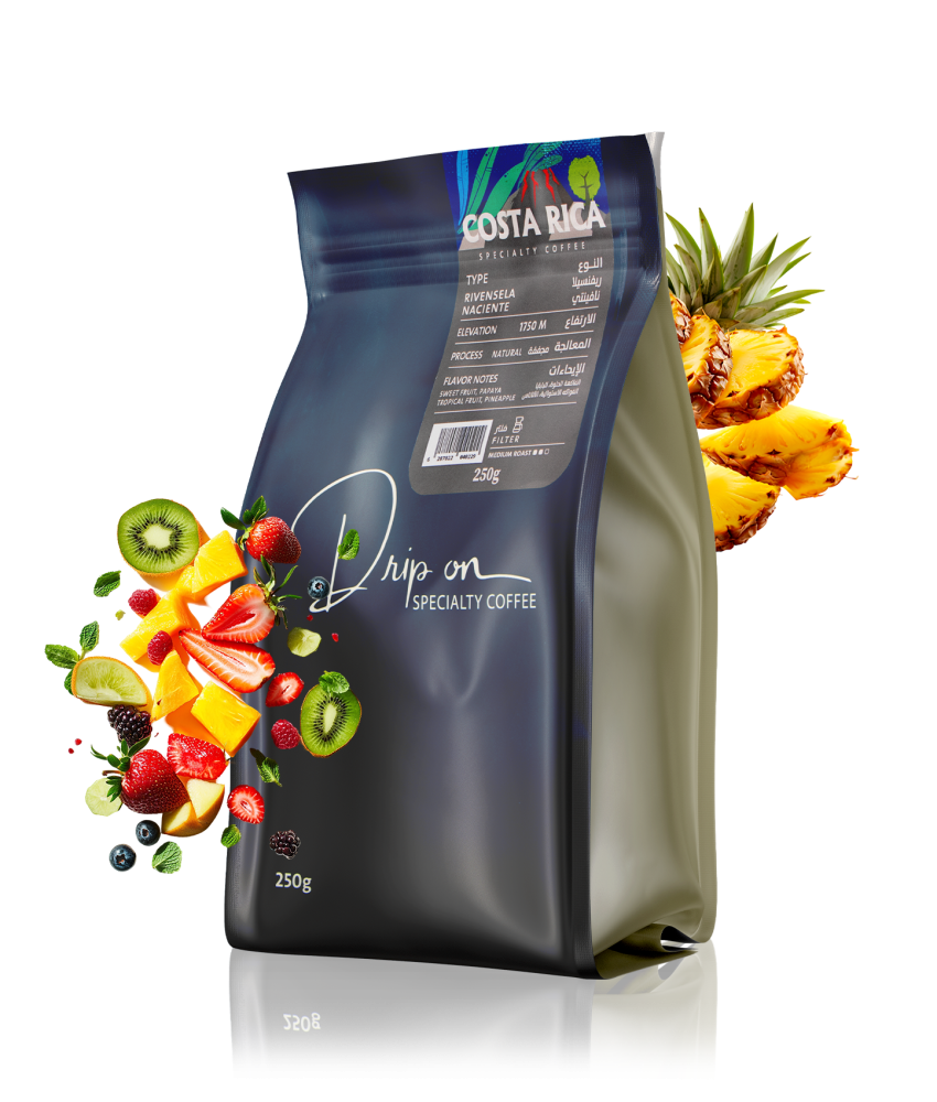 الطابع الفريد الذي تحمله قهوة "كوستاريكا ريفنسيلا نافينتي" لا يتوقف عند مجرد مكونات محدودة، بل يمتد ليشمل رحلة نكهات متدرجة وغنية. تبدأ بملاحظات خفيفة من الفواكه الحلوة التي تلامس اللسان بلطف، ثم تتطور النكهات شيئاً فشيئاً لتكشف عن طبقات البابايا الناعمة التي تضيف لمسة من السلاسة المدهشة، وبعدها يظهر الأناناس بإشراقة استوائية تضيف عمقاً وانتعاشاً مميزاً. هذه القهوة المختصة تمنح تجربة مركبة يمكن تذوقها على مراحل، حيث يختلف الطعم باختلاف طريقة التحضير أو حتى درجة الحرارة أثناء التبريد، مما يجعلها قهوة مثالية لمحبي الاكتشاف والتنوع. إن كل كوب منها يعكس فلسفة أن القهوة ليست مجرد مشروب صباحي، بل تجربة متعددة الأبعاد تُشبه قراءة كتاب غني بالتفاصيل أو الاستماع إلى سيمفونية متكاملة.