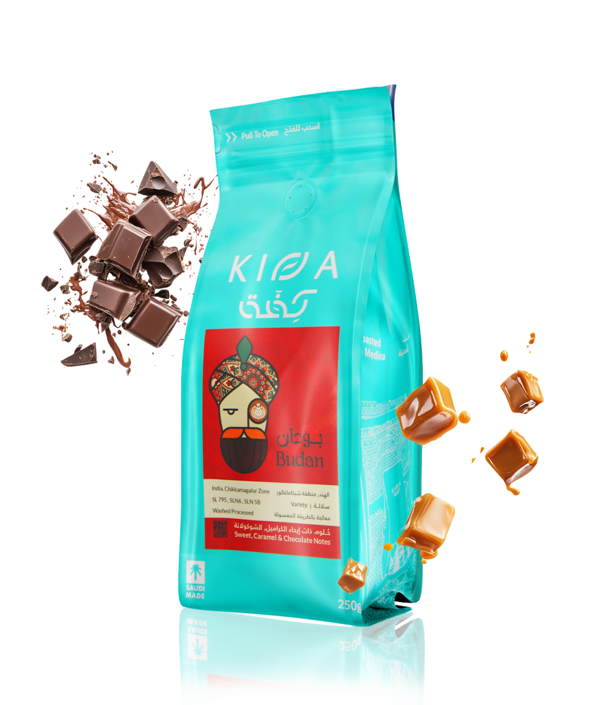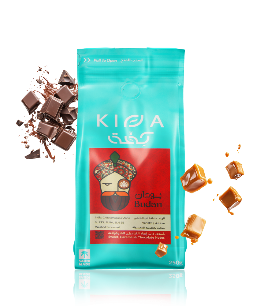 ✨ ☕ قهوة بودان من محمصة كفة، قهوة مختصة من مزارع الهند، حيث تتناغم نكهة الشوكولاتة الناعمة مع الكراميل الحلو لتجربة متوازنة ولذيذة.