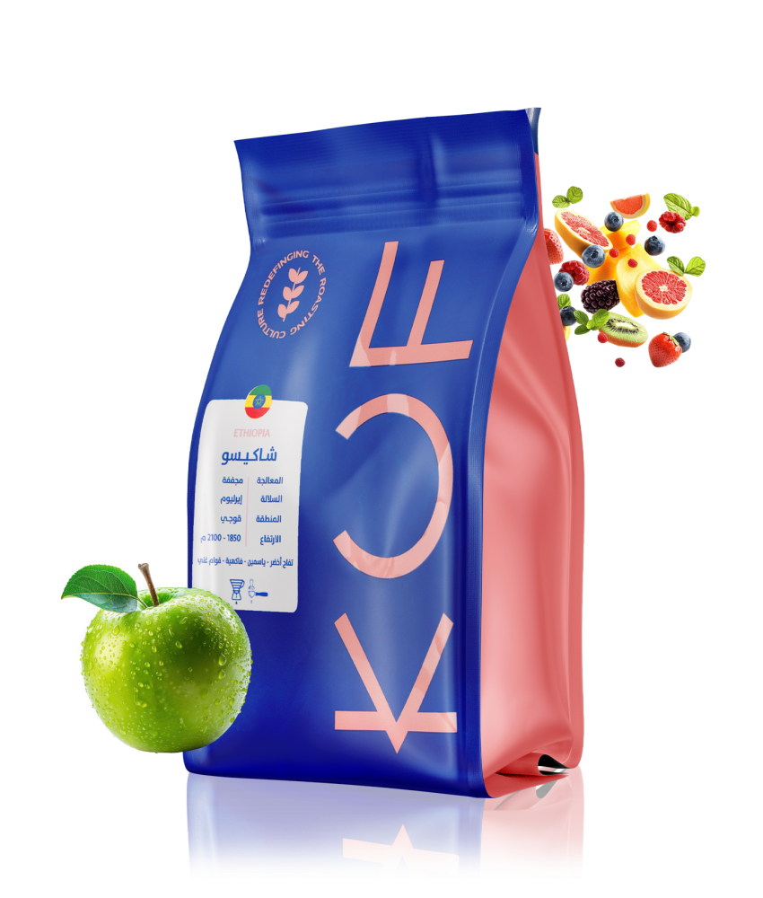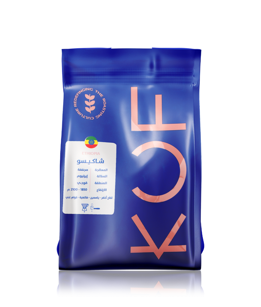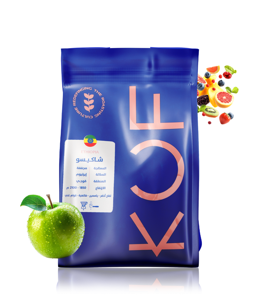 ✨ محصول شاكيسو الفاخر من إثيوبيا، معالج بالطريقة المجففة، يتميز بإيحاءات التفاح الأخضر والياسمين، مع قوام غني ونكهات فاكهية منعشة.