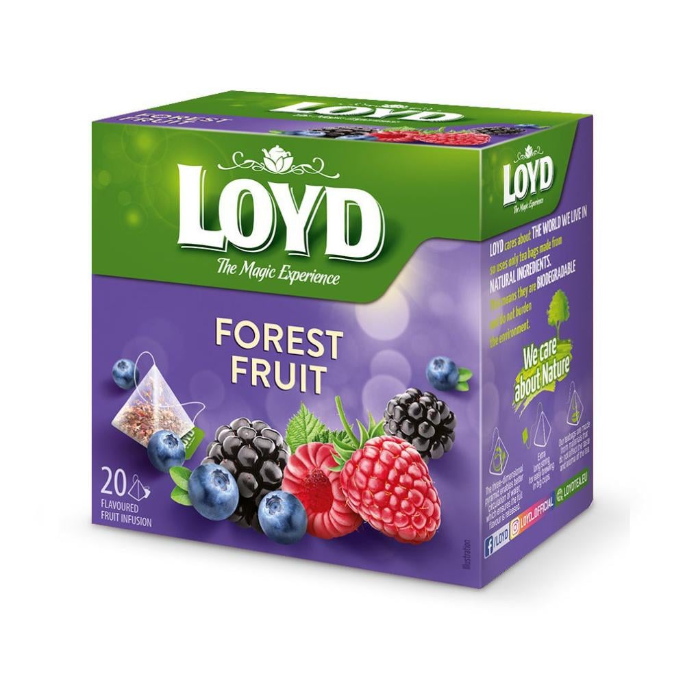 يمثل شاي لويد بنكهة فواكه الغابة انعكاسًا لمزيج طبيعي غني يضم التوت الأحمر والأسود والأزرق مع الأرونيا السوداء والتفاح وزهرة الورد البري. كل عنصر في هذه التوليفة يضيف نكهة خاصة، لتخرج النتيجة في كوب متوازن يجمع بين الحلاوة والانتعاش والحموضة الرقيقة. التوت الأحمر يمنح لمسة لاذعة منعشة، بينما يأتي التوت الأسود والأزرق بعمق إضافي، ويضفي التفاح قاعدة ناعمة تجعل الطعم أكثر انسجامًا. زهرة الورد البري تضيف بعدًا عطريًا رقيقًا يثري التجربة. الأكياس الهرمية المصممة بعناية تسمح للمكونات بأن تتحرك بحرية داخل الماء، مما يجعل اللون أعمق والطعم أكثر تركيزًا. هذا الانسجام بين العناصر الطبيعية يمنح الشاي شخصية مميزة لا يمكن مقارنتها بأي نوع تقليدي.