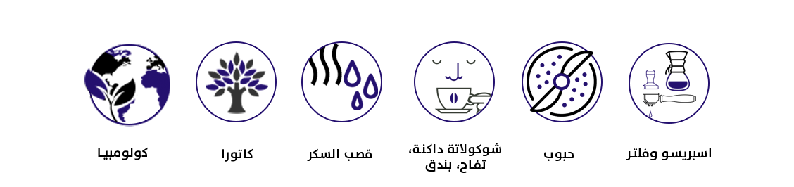 محصول كولومبي فاخر، تمت معالجته بقصب السكر للحصول على مذاق غني لاذع منزوع الكافيين، ويتميز بإيحاءات فاكهية منعشة تتضح في نكهة التفاح بالإضافة إلى إيحاءات ممتعة تتضح في نكهة الشوكولاتة الداكنة والبندق اللذيذ.