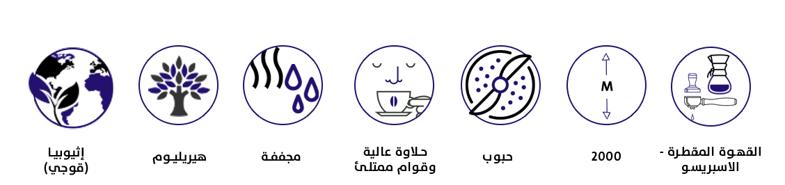 وصف المنتج : قهوة إثيوبية مجففة تأتي من منطقة قوجي الشهيرة بزراعة البنّ، على ارتفاع يصل إلى 2000 متر، تتميز بقوام ممتلئ وحلاوة عالية.