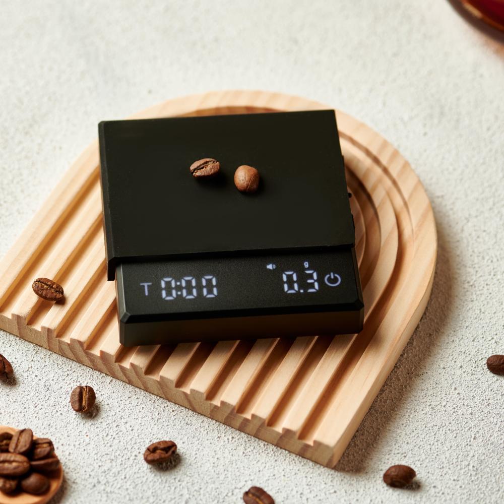 تم تطوير الميزان لتلبية احتياجات تحضير القهوة اليومية بدقة تبدأ من 0.3 جرام، مع عرض متزامن للوقت والوزن. يحتوي على قاعدة حماية من الربل الأسود ويعمل بنظام شحن حديث USB-C.