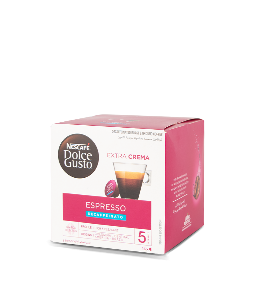 Compatible with all Dolce Gusto machines, Gusto Espresso Decaf capsules allow you to easily prepare delicious espresso coffee anytime, anywhere.